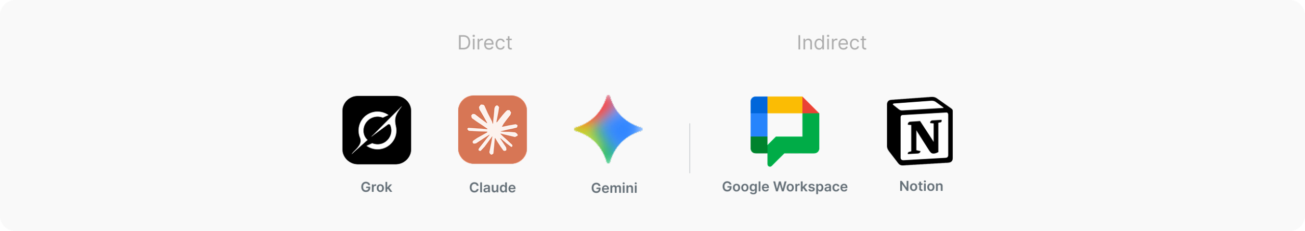We analyzed 3 Direct competitor – ChatGPT Free, Grok, Claude, Gemini and 2 indirect Chat Platform Competitor- Google Workspace Chat, and Notion AI – to see how they organize chats and manage conversation history.